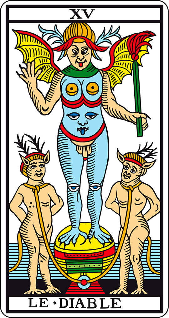 マルセイユ版の雫の形は、下向きではなく上向きに描かれ、月がエネルギーを吸い上げている様にも見えることから、先の解釈と合わせ「悪妻・魔女」といった否定的な存在として解釈される事も多いです。