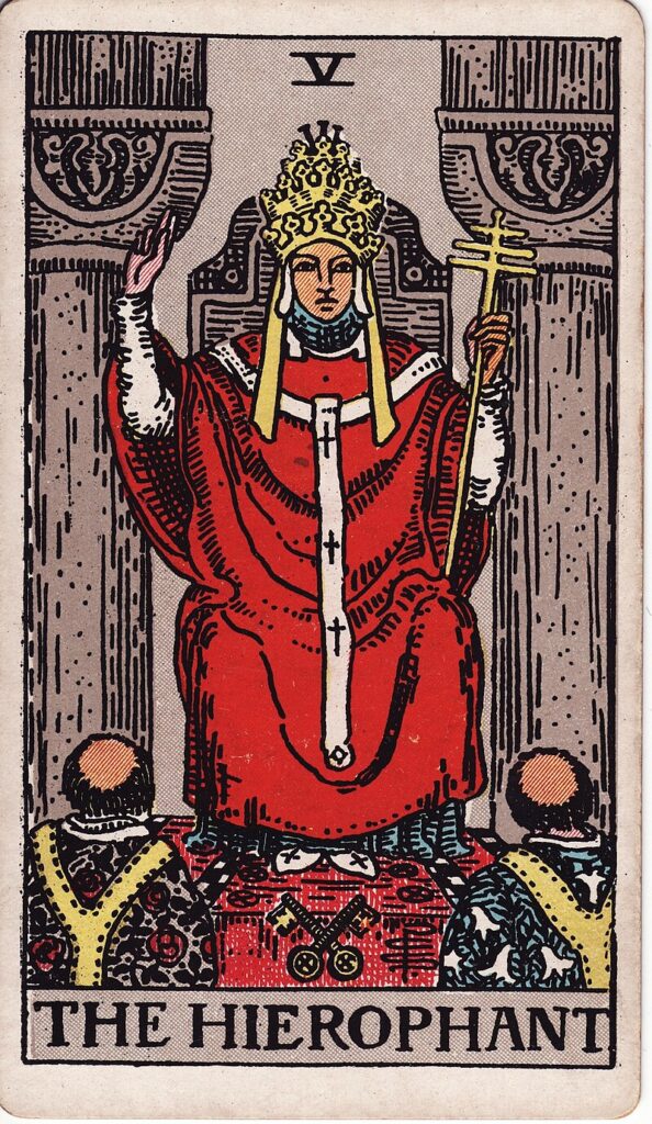 「教皇V」は「皇帝IIII」と異なり宗教的な律法を司ります。社会的道徳ではなく宗教的聖性に基づいて裁きを下します。